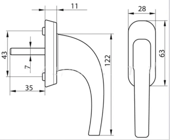 KLAMKA OKIENNA Z TWORZYWA DO OKIEN PVC